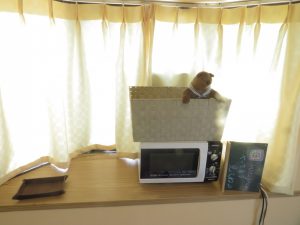 ホットパックを多用するので出窓に電子レンジを置いたのだけど、これが邪魔だな。