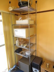 鍼灸道具を置く場所はどうしても圧迫感がある。ポール型を止めて木材のタンスに替えようかな。
